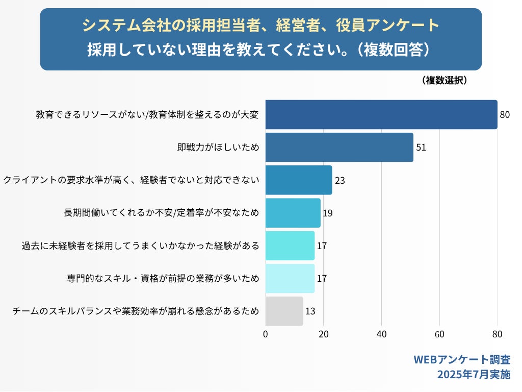 ■未経験者の採用を阻む最大の理由は「教育リソースの不足」──現場の声に見る“育成の難しさ”