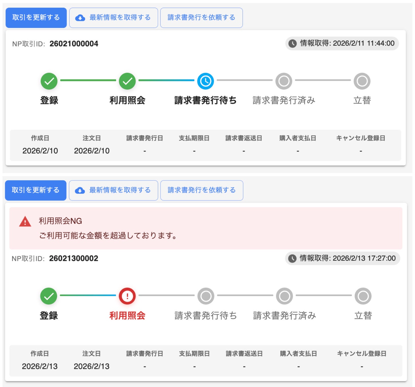 取引レコードの状態をひと目で把握できるよう、ステータス表示をパネル形式に刷新しました。