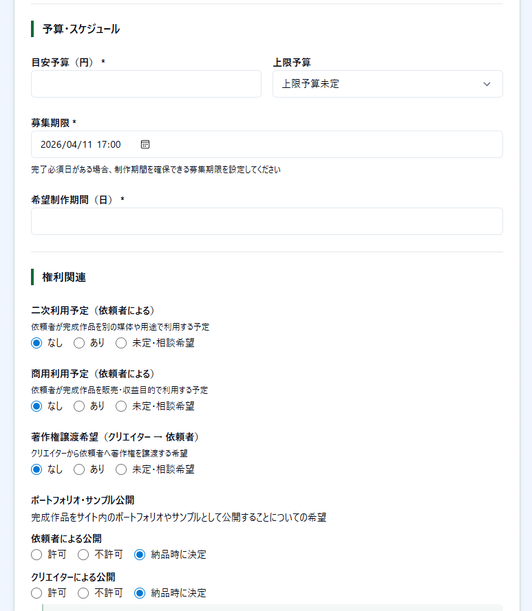 主に掲示板では、不特定多数の多くのクリエイターを募り、条件に合うクリエイターにお願いしたい場合。