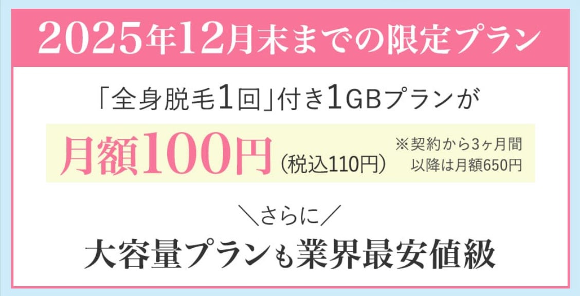 美容・健康・ライフスタイル事業を軸に多角的なサービスを展開するミュゼ・メディア・HD株式会社(本社:東京都千代田区、代表取締役:高橋 英樹、以下「ミュゼ」)は、エックスモバイル株式会社(所在地:東京都港区、代表取締役:木野 将徳、以下「エックスモバイル」)と、ミュゼの全身脱毛1回*1がセットになった月額100円(税抜)の利用料でスタートできる新たなモバイル通信サービス「ミュゼモバイル」を、2025年10月10日(金)より提供開始します。また、オプションプランを付けることで、毎月ミュゼのコスメが届き、脱毛やフェイシャルなどのエステコースを受けられます。通信サービスでありながら“キレイ”を叶える、ミュゼならではの革新的なモバイルサービスです。