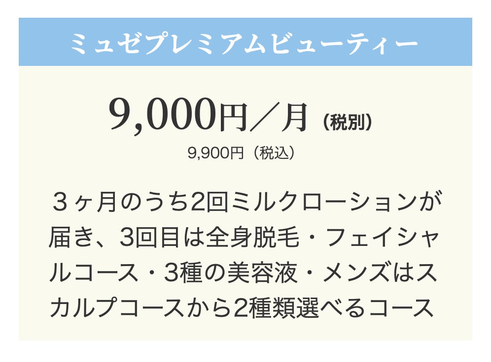 ■月額9,000円(税抜) 「ミュゼプレミアムビューティー」コース