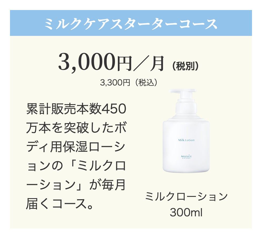 ■月額3,000円(税抜) 「ミルクケアスターター」コース