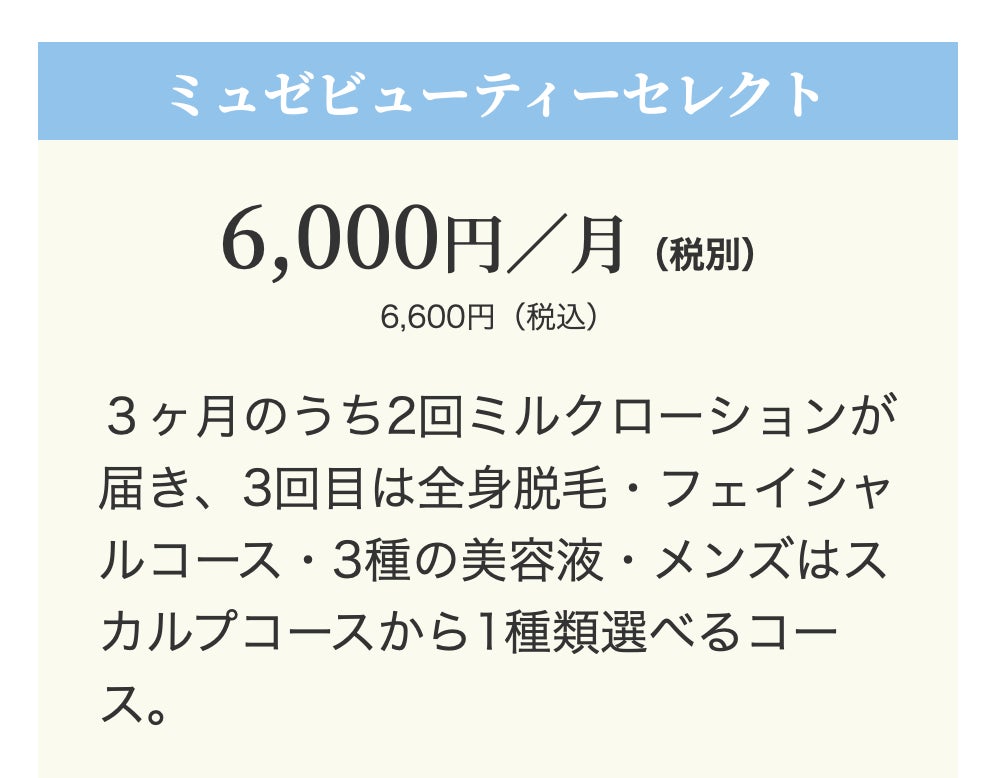 ■月額6,000円(税抜) 「ミュゼビューティーセレクト」コース