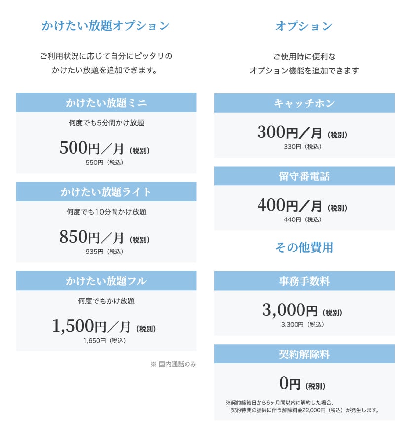 ご利用状況に応じて自分にピッタリのかけたい放題を追加できます。