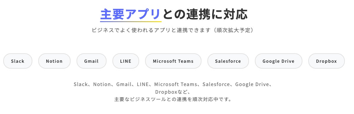 Slack、Notion、Gmail、LINEなど主要ツールを接続