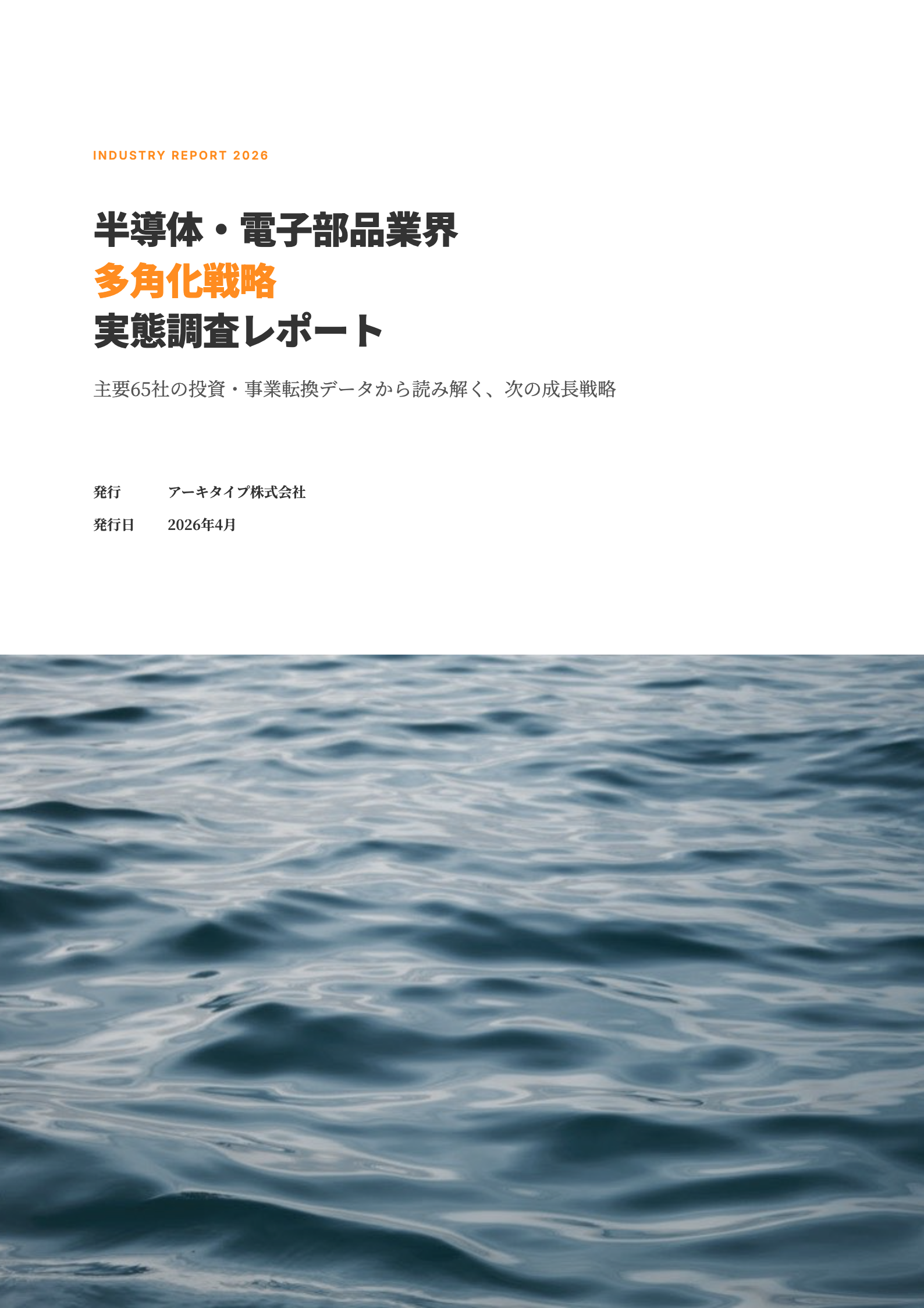 新規事業開発コンサルティングのアーキタイプ株式会社(本社:東京都港区、代表取締役:菅野龍彦)は、半導体・電子部品業界の日本企業65社を対象に、多角化・新規事業の取り組み実態を公開情報(中期経営計画・IR資料・ニュースリリース等)に基づき調査したレポート『半導体・電子部品業界 多角化戦略 実態調査レポート 2026』(全27ページ)を無料で公開しました。本レポートは、65社の投資動向を10テーマに分類し、多角化の成否を分けた3つの分岐点と構造的課題を整理しています。