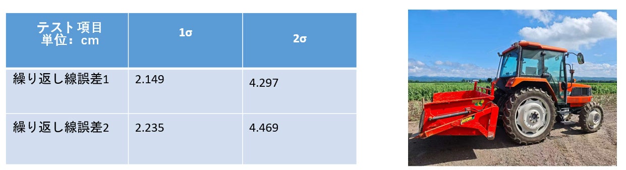 農業用トラクターの自動操舵で直線走行がどこまで安定するかを評価する。