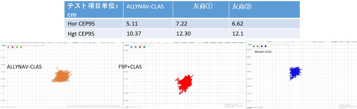 ALLYNAVのCLAS対応受信システムは、他社製CLASモジュールと比較して平均誤差を約30%低減。