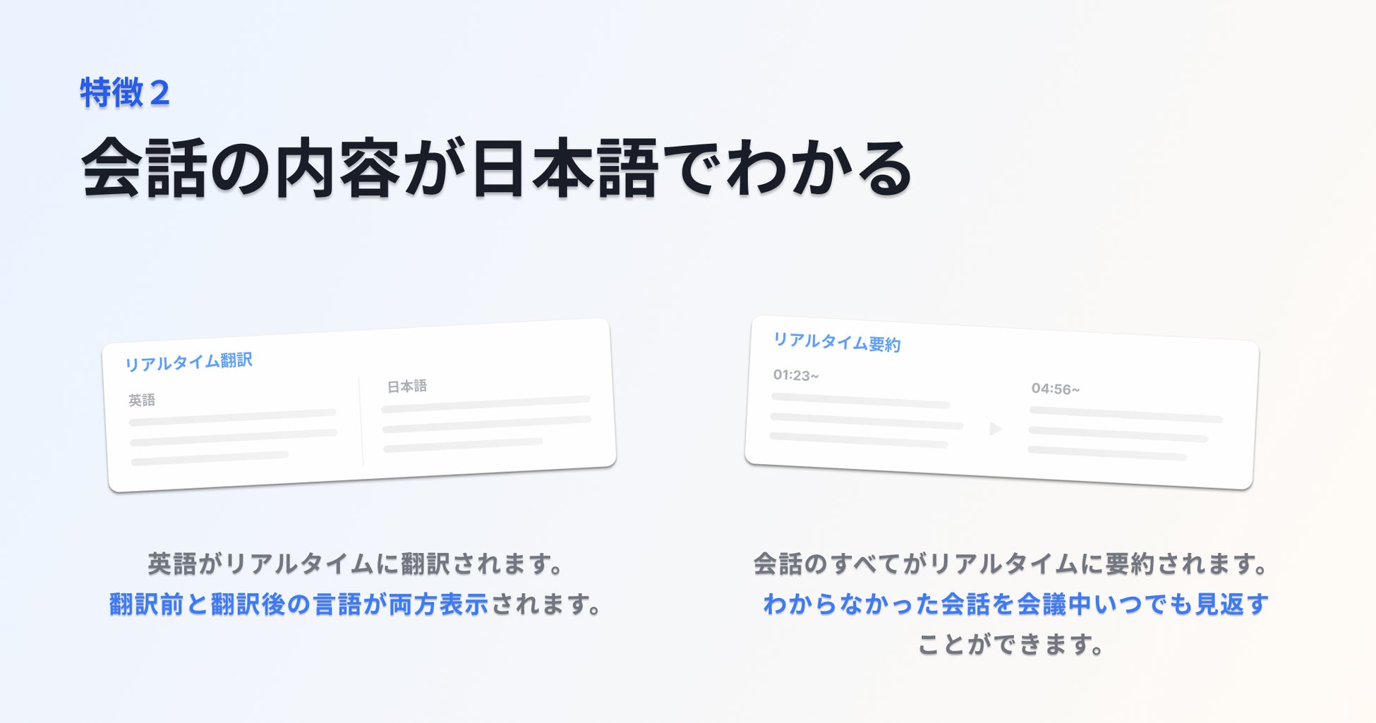 会話の内容が“日本語で”分かる(字幕+リアルタイムの要約)
