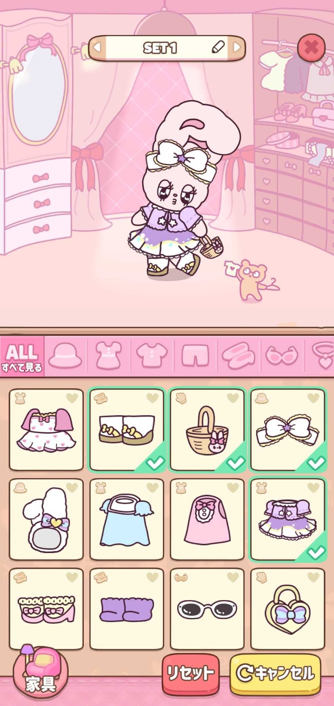 クリアでゲットしたアイテムで、エスターバニーを可愛くコーデ。