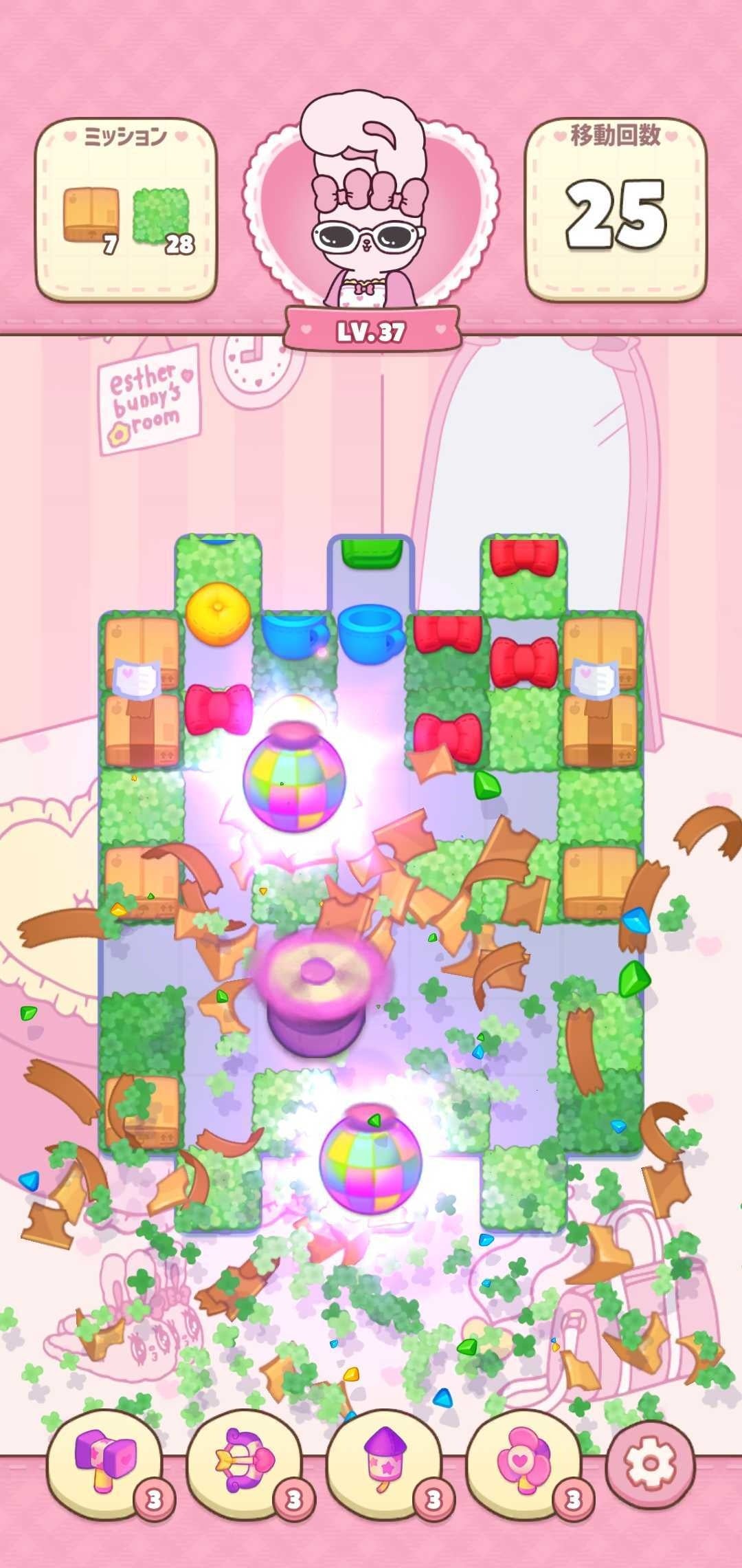本作は世界中で愛されるキャラクター「エスターバニー」初となるスマートフォン向けの3マッチパズルで、簡単なルールと爽快な演出で誰でもサクサク楽しめるゲーム性が特徴です。
