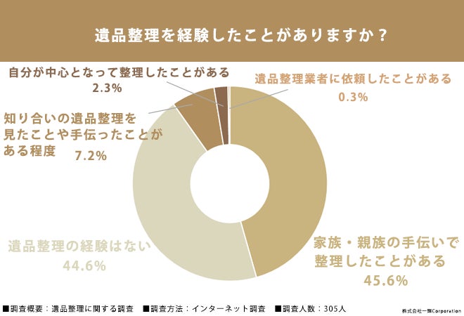 そこで今回、遺品整理および骨董品・美術品の買取を行っている株式会社一輝Corporation(所在地:埼玉県狭山市、代表取締役:相原一仁、https://ikki-inc.net/)は、20代の女性305名を対象に、遺品整理に関する調査を実施しました。その結果をご紹介いたします。