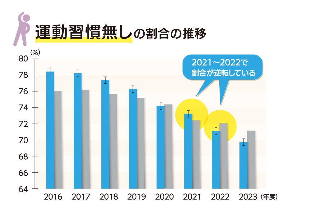 2021~2022年で運動習慣がないと回答された割合が健康宣言事業所と未宣言事業所で逆転。
