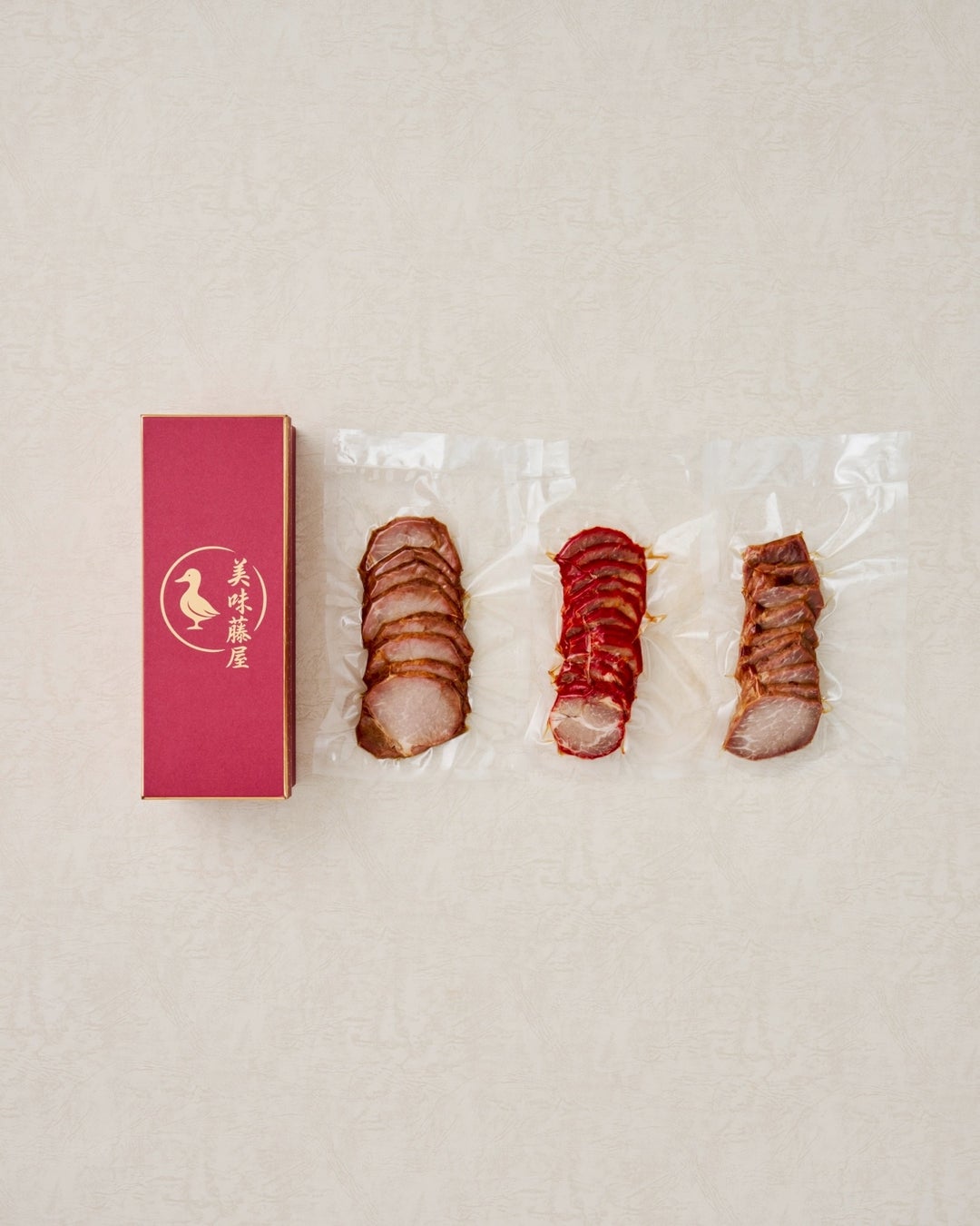 美味藤屋自慢のチャーシュー「旨味・蜜味・極醤油」3種の詰め合わせ。