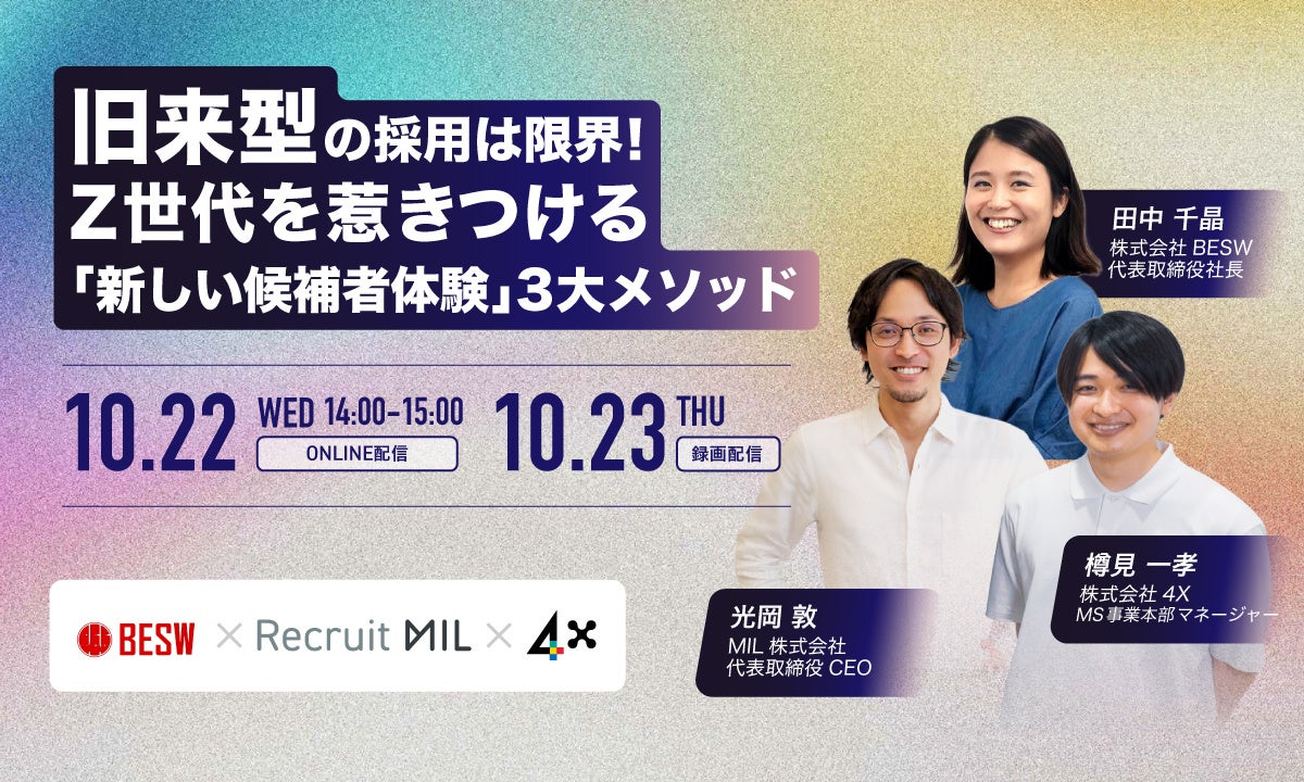 ブランドと社会をつなぐ伴走型コミュニケーションカンパニーとして、戦略設計からWeb、SNS、動画などコンテンツにまつわるあらゆる施策を提供する株式会社4X(本社:東京都千代田区、代表取締役社長:家口 寛、以下「4X」)は、10月22日(水)14時~開催のウェビナー「旧来型の採用は限界! Z世代を惹きつける『新しい候補者体験』3大メソッド」へ登壇いたします。