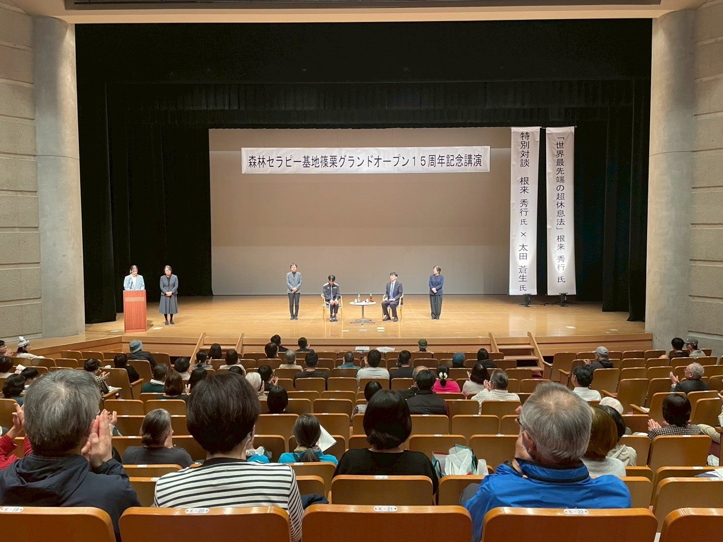 2009年3月に認定、2010年9月にグランドオープンした「森林セラピー基地篠栗」。現在38名の「森の案内人」が活動し、これまで1万人を超える方々に、医学的エビデンスに基づいた癒やしの体験を提供してきました。今年は、この15年の節目を記念し、町全体で健康と癒やしを考える日として講演会も実施されました。