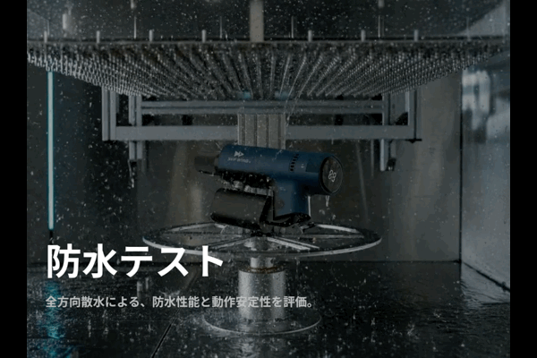 POWASH™︎は、屋外での使用を前提にIP64の防水・防塵設計を採用。砂やホコリが舞うキャンプ場や駐車場でも安心して使用できます。水しぶきがかかる状況や、地面に置いて使うシーンを想定した構造により、アウトドアや外遊びの後処理を“気にせず使える道具”として成立させました。