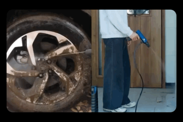 高圧モードでは砂や泥などの汚れをしっかり洗浄。一方で、低圧モードに切り替えることで、壊れやすいものや人の肌、ペットにも配慮したやさしい水流で使用できます。
