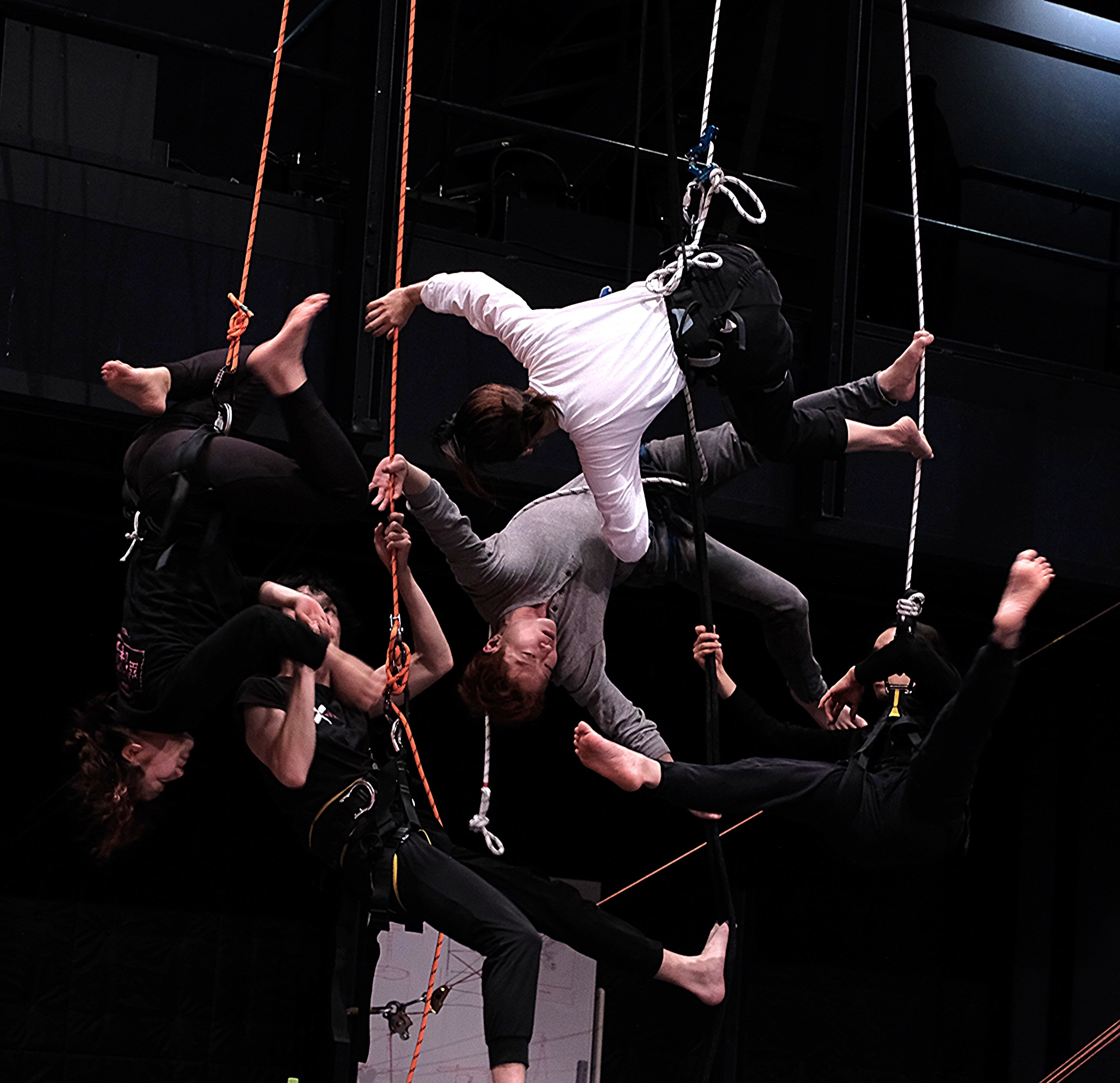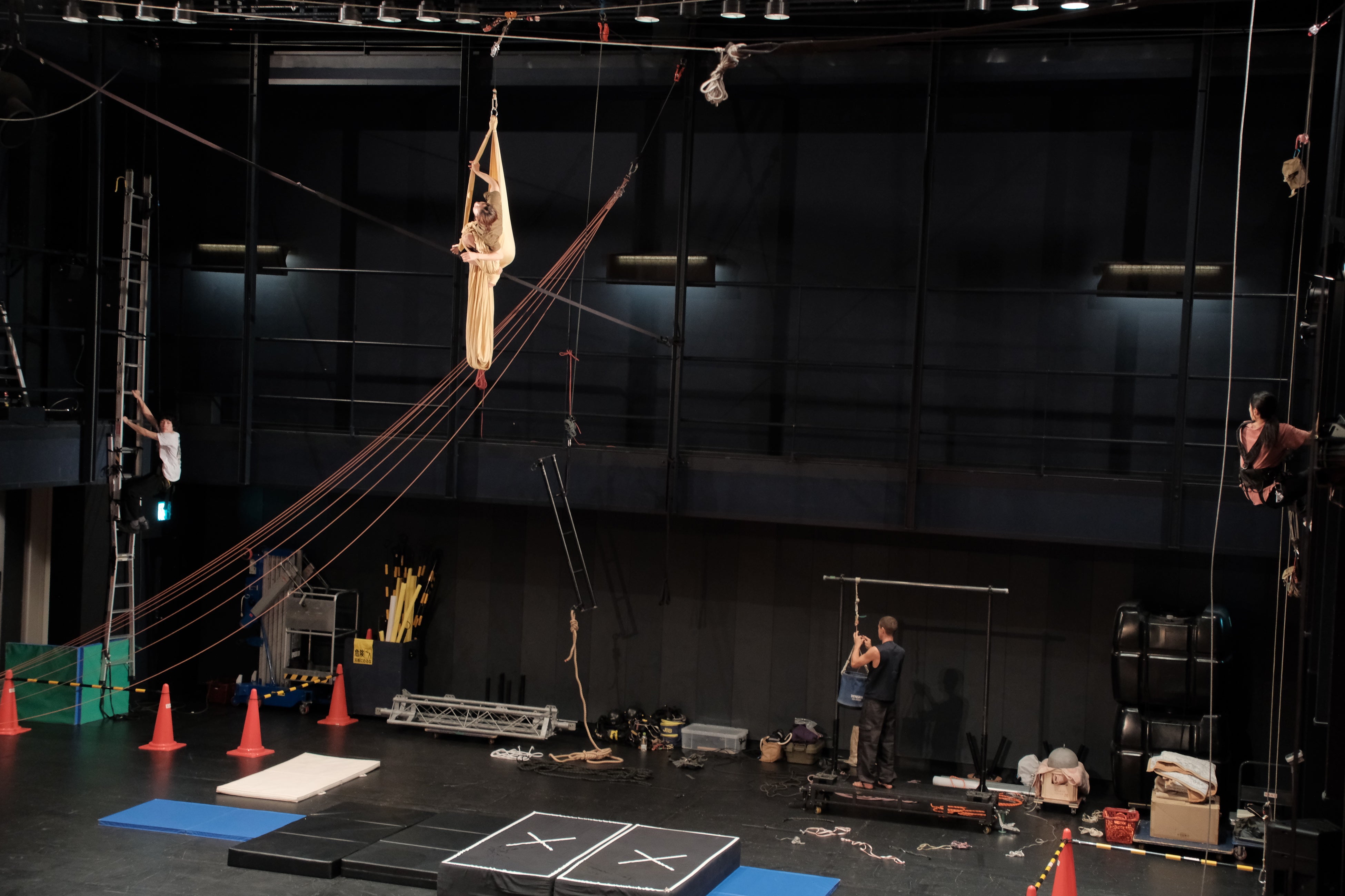 言葉を使わない現代サーカスで、極限の身体とともに空中までを舞台に表現します。