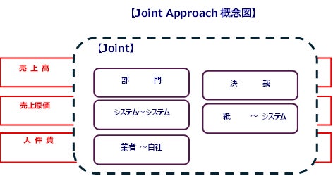 Joint Approachとは、P/Lの大半を占める『売上高・売上原価・人件費』(以下「キー・プロセス」)の各プロセスの下記のようなJoint(つなぎ目)に注目して改善活動を行うためのメソッドとなります。