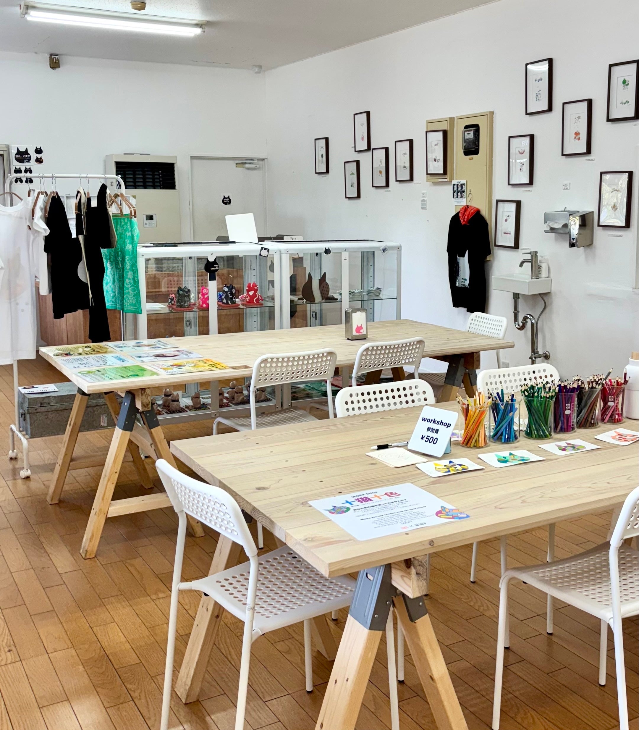 長江CUBEは2023年に閉寮となった尾道海技専門学院長江寮を再生した施設です。元食堂を「gallery ca:temporary」(イートインのできるギャラリー)、3畳1間の部屋が33室並ぶ寮棟を「33言動」(ショップ&スタジオ)、元教室棟を「classroom」(イベントスペース)として少しずつリノベーションを進めています。現在、「gallery ca:temporary」は毎日営業中。「33言動」「classroom」はイベント時のみ開放しています。また、長江CUBEでは猫にまつわる雑貨やアートの販売、猫にまつわるワークショップ・イベントを行う猫の横丁プロジェクトも展開しています。