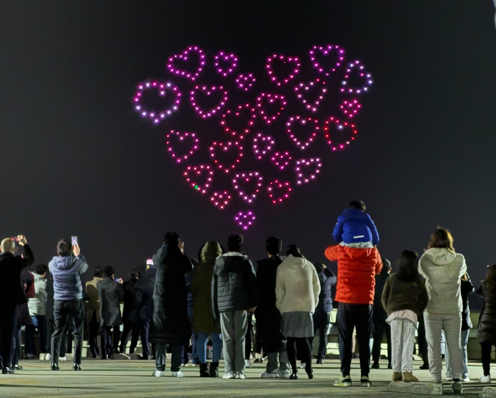 夜空を舞う数百機のドローンが描く光のアートは、SNSを通じた拡散効果も高く、