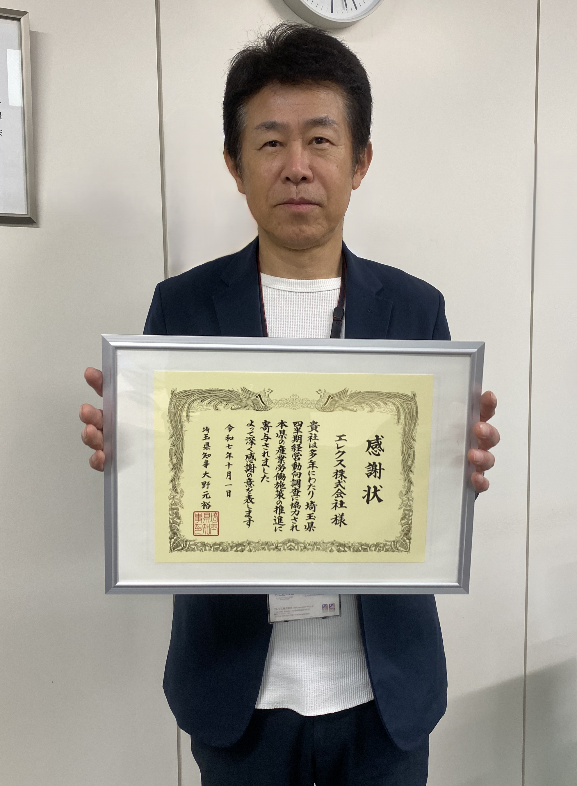 エレクス株式会社、埼玉県「四半期経営動向調査」への継続協力に対し感謝状を拝受(埼玉県知事 大野元裕)