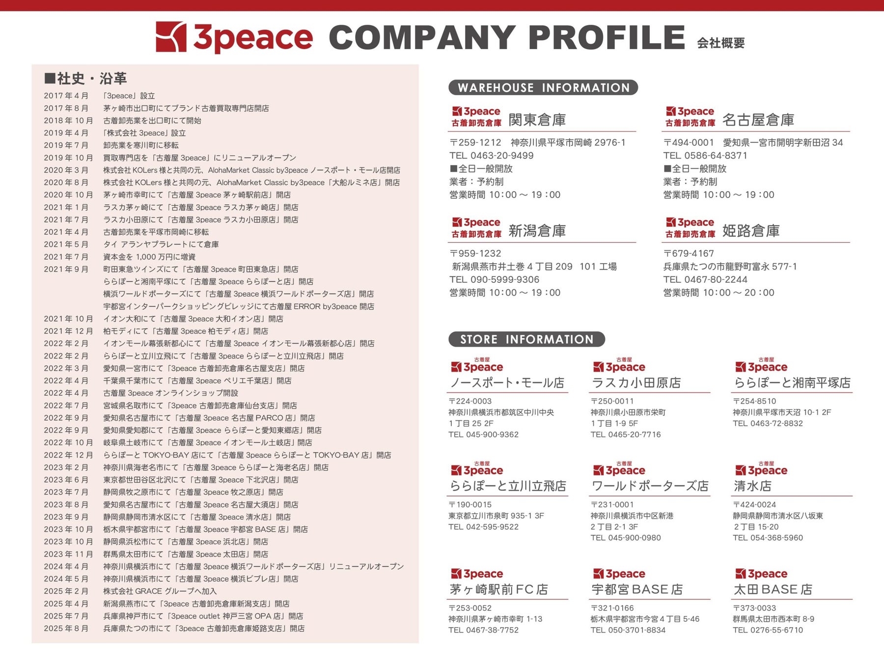 3peaceは今後、倉庫拡張・地方ポップアップ出店など、“古着の流通と楽しみ方”を革新する新たなチャレンジを進めてまいります。