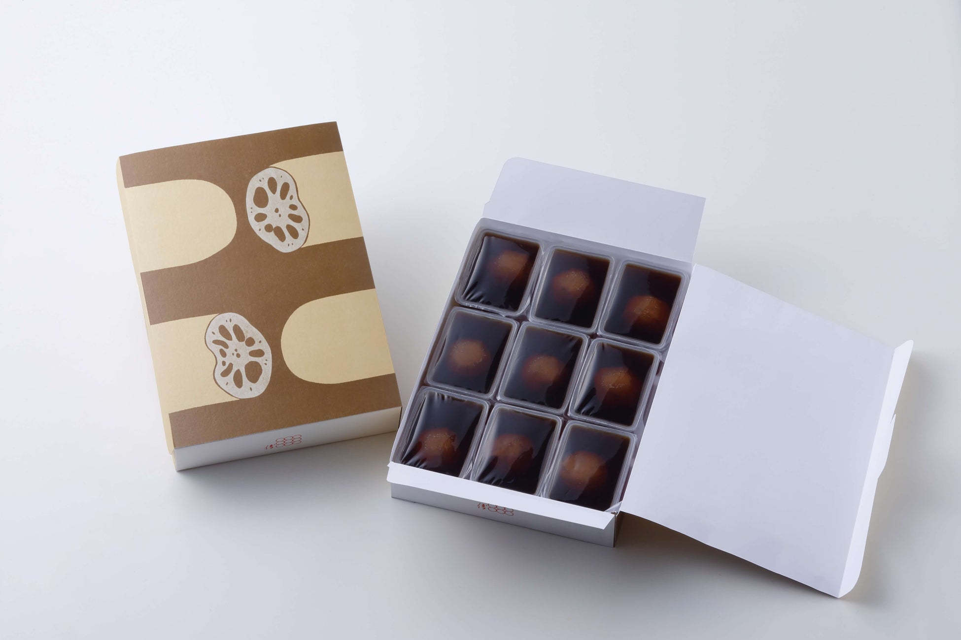定番「蓮もち」に、秋冬限定の特別な栗餡を閉じ込めました。蓮粉ならではのとろりとした口あたりと、和三盆のやさしい甘みが栗の風味を引き立て、ふわりと余韻が残る栗菓子です。