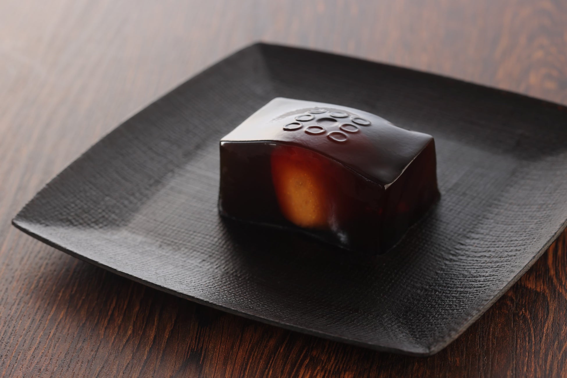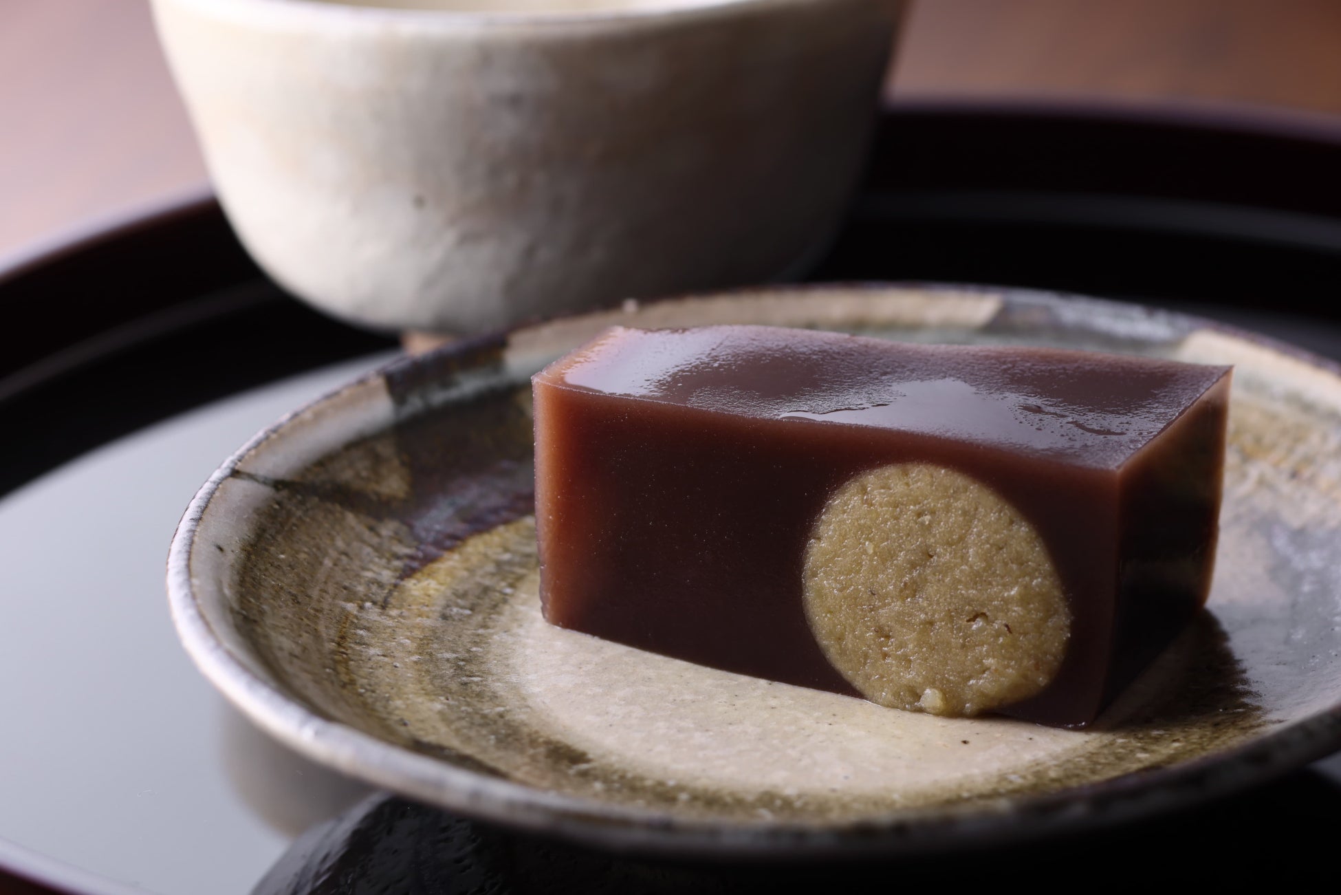 ほどよい甘さの栗きんとんを、なめらかな小豆餡で包みました。切り分けるたびに浮かび上がるまんまるの月影とともに、栗のやさしい甘みと小豆の風味が広がる秋限定の味わいです。