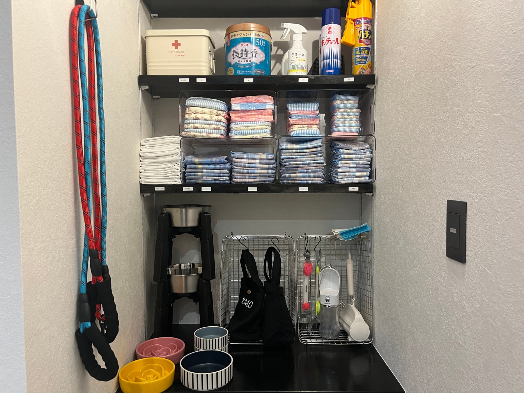 ・お散歩バッグ・夜用首輪ライト・足拭きシート・お掃除グッズ