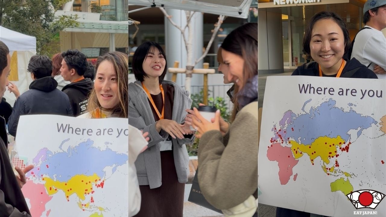 2日間は常に2〜3ヶ国語対応ができるように配置し、来日者に「Where are you from?」の看板と共に出身国をマークできるような企画も実施。