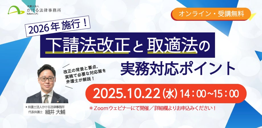 【弁護士による無料セミナー】「2026年施行!下請法改正と取適法の実務対応ポイント」10月22日オンライン開催