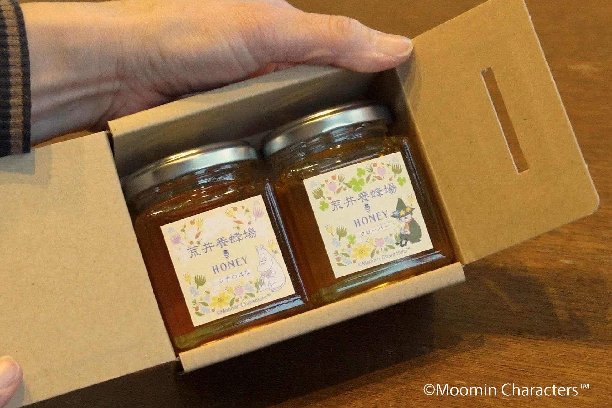 当商品は、シナの花およびクローバーそれぞれから採蜜されたはちみつをそれぞれ「ムーミン」と「スナフキン」がデザインされた特別なパッケージにてセットでお渡しいたします。(計300g(シナの花150g×1/クローバー150g×1))
