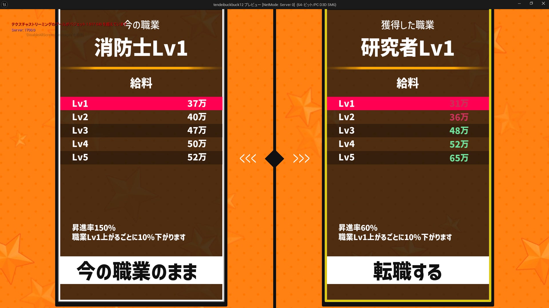 本作には40種類以上の職業が存在し、職業レベルを上げる事でそれぞれの上昇幅に応じて獲得できる給与が上昇します。給料は給料日マスを通過する事で獲得でき、ピッタリ踏むとそのターンでもらえる給料が2倍になります!
