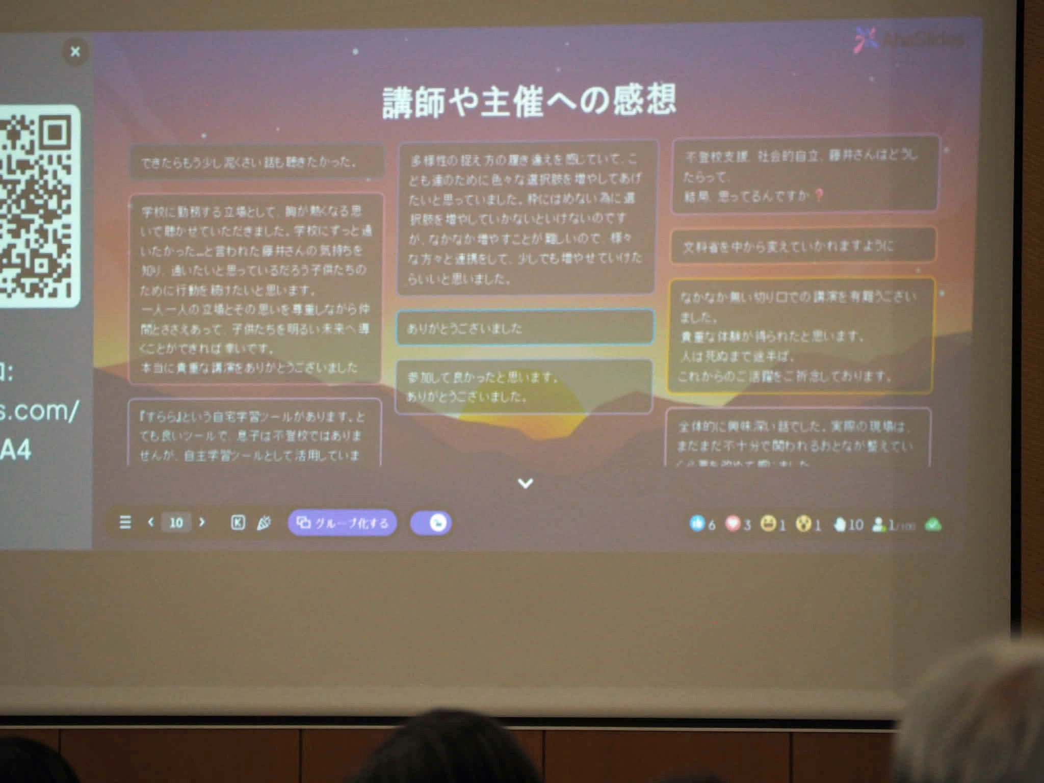 【教育関係者】 ともすると主催者側にとって耳の痛い内容を予想できたはずなのに、敢えて此の論者を講師に据えた覚悟や矜持を感じました。スタイルを不動のものとせず、常にアップデートが必須だと事務局のブレーンが考えていらっしゃったとしたら、凄いと思いました。