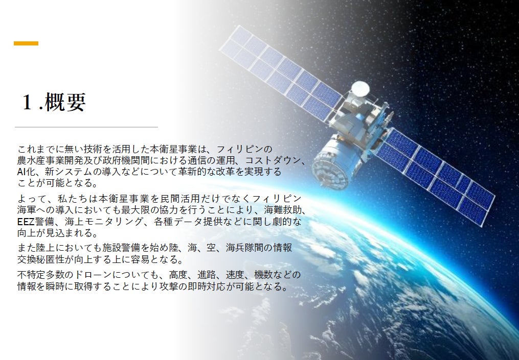 In agriculture, starting with at least 200 hectares, there are many challenges besides crop production technology, including production management, logistics, and power supply. Both parties concluded that there is no future for Philippine agriculture unless these issues are addressed simultaneously, and agreed to proceed with agricultural development utilizing satellite technology.