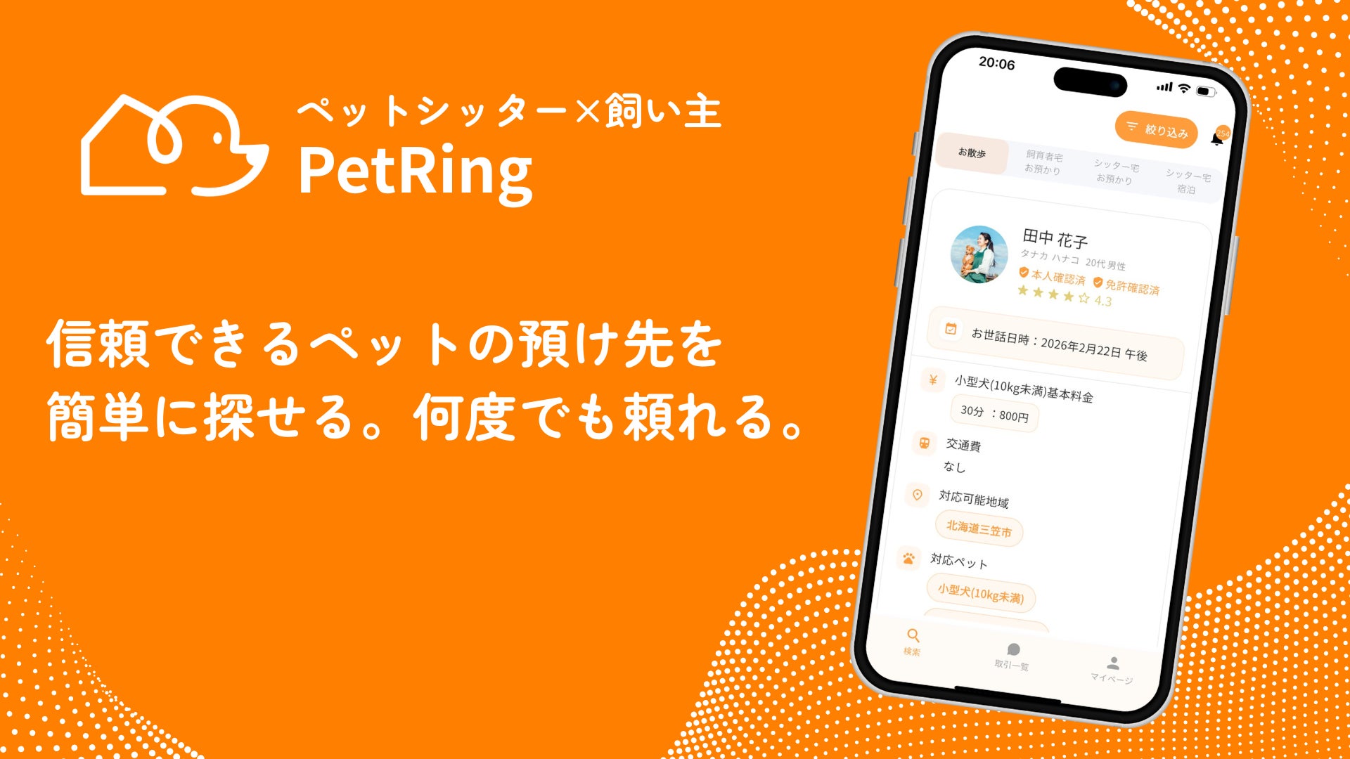〜飼い主の預け先探しと、ペットシッターの集客・管理をスマホ1つで完結。業界初、動物取扱責任者だけが登録できる信頼と安心の預け先を提供〜