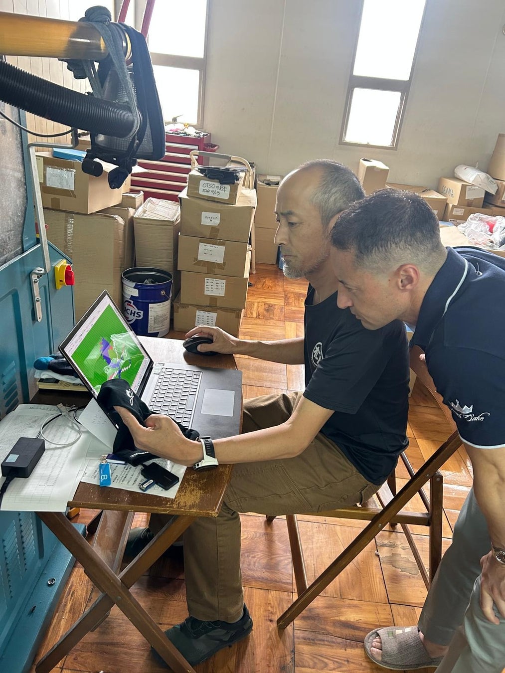 国内靴下生産量の約40%を占める 奈良県広陵町 は、100年以上の歴史を持つ日本の靴下産業の中心地として知られています。2025年初旬より、CL by C.ルメールの開発チームと3名のジョッキーは、同町のパートナー工場 昌和莫大小株式会社 を訪問し、約8か月にわたり試作と検証を繰り返してきました。