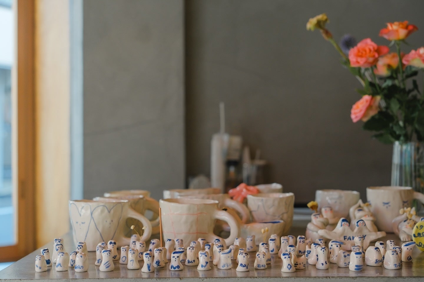 制作当初から続けている手びねり技法でマグカップやオブジェを制作