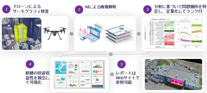 カーボンニュートラル社会の実現に向けて、建物が消費するエネルギーの削減は、重要な要素であり、そのCO2排出量は全体の40%に達するとの試算があります。また、その建物が消費するエネルギーのうち30%は、建物の外皮(壁、窓、屋上、ドア)から損失しています。しかしながら、建物外皮の課題解決をするためには、原因の特定や修繕の費用対効果を明確にする必要があり、その手法に関するコストが高く、現状は普及が進んでいません。