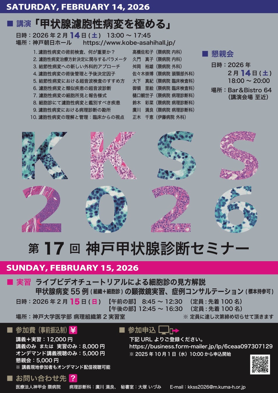 【医療者対象 オンデマンド配信あり】第17回神戸甲状腺診断セミナー開催のご案内 ― テーマ『甲状腺濾胞性病変を極める』 ―