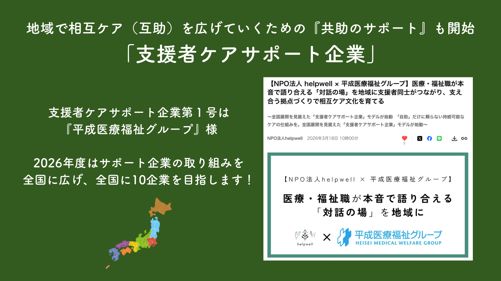 【NPO法人 helpwell】「支援者ケアを常識に」する社会を共に描く協賛企業の募集を開始