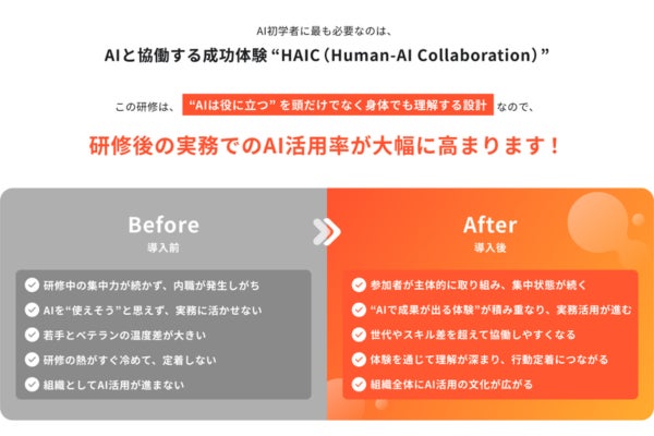 本プログラムを通じて「HAIC:Human-AI Collaboration(人間とAIの協働)」の成功体験を広めることで、企業におけるさらなるAI活用の普及を目指します。
