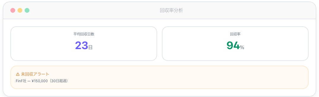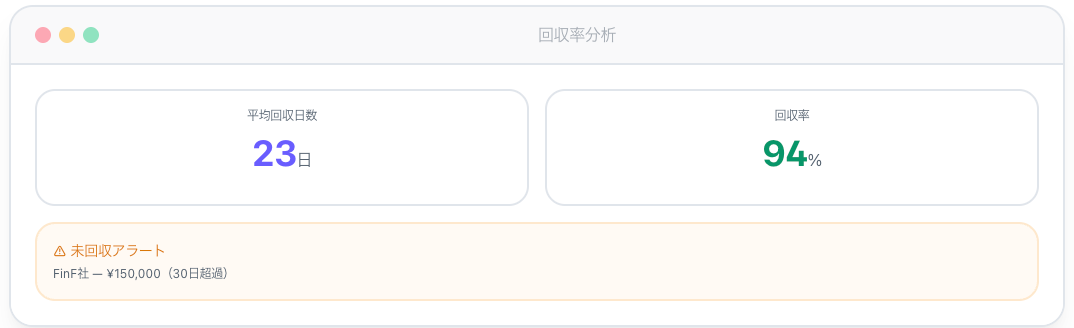 納期が近づくと自動で通知。納品後一定期間が経過しても請求が完了していない案件も検知し、入金漏れを防ぎます。
