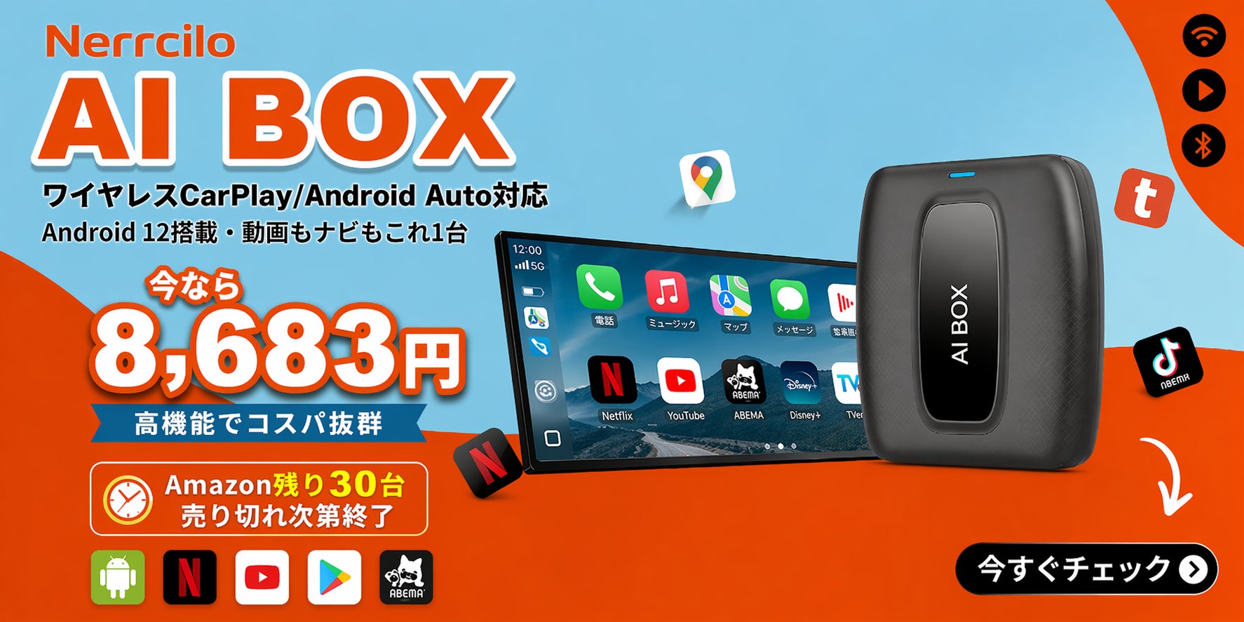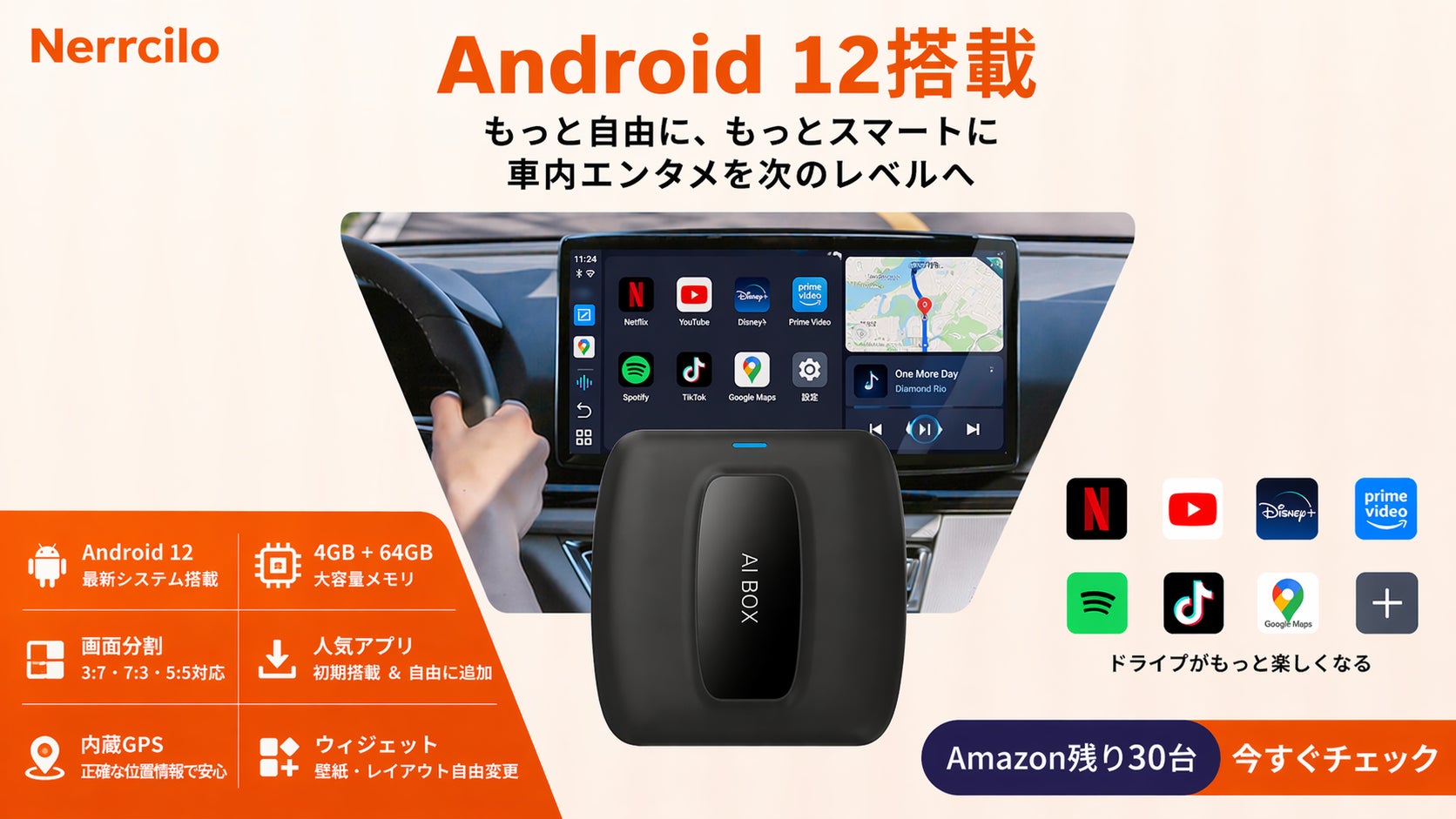 GWのお出かけ・帰省シーズンに、長距離ドライブの車内環境をもっと快適に。動画もナビも使いやすくなるNerrciloのAI Boxが、今だけ8,683円