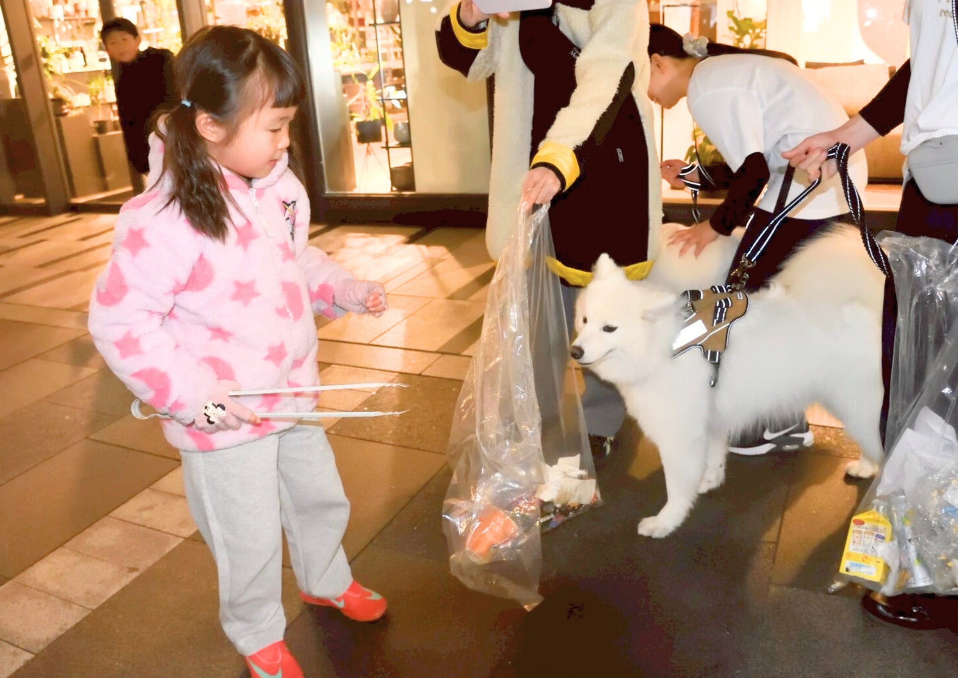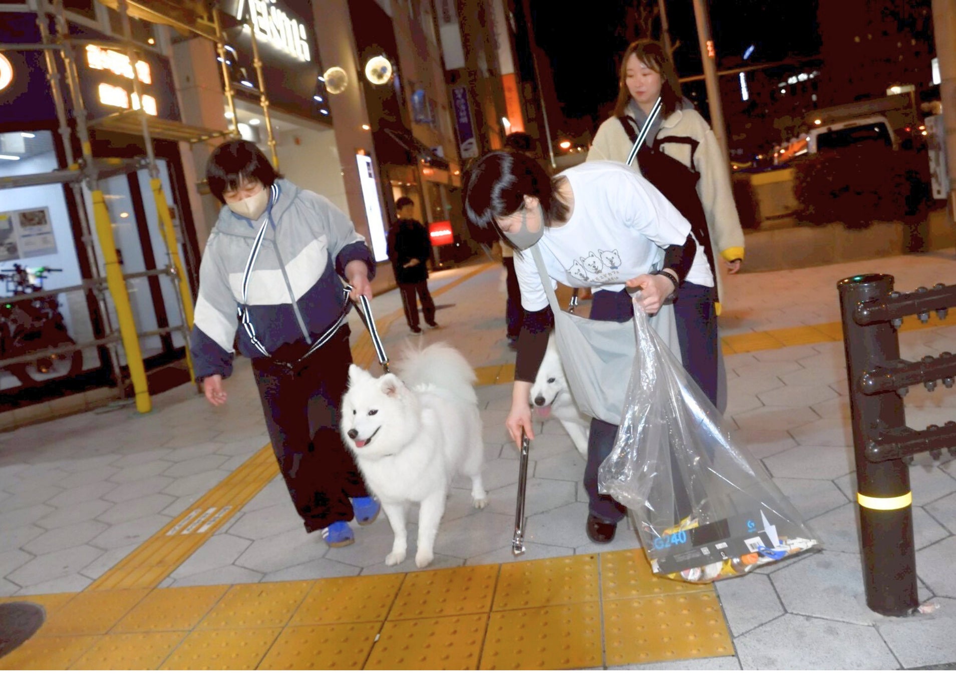 2026年1月19日から1月23日までの期間中、サモエドたちの日々の散歩時間に合わせて実施し、事前に募集を行い参加していただいたゲストと心斎橋の街を歩きながら、複数頭のサモエドによる散歩を通じて、地域の美化と環境意識の向上を目的とした清掃活動として、店舗周辺エリアのゴミ拾いを行いました。