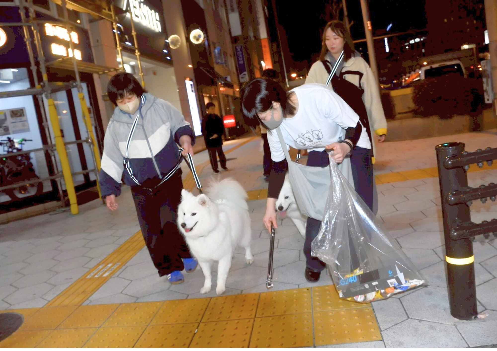 リニューアルオープン企画として、サモエドたちの散歩時間を活かした参加型の地域清掃活動を実施