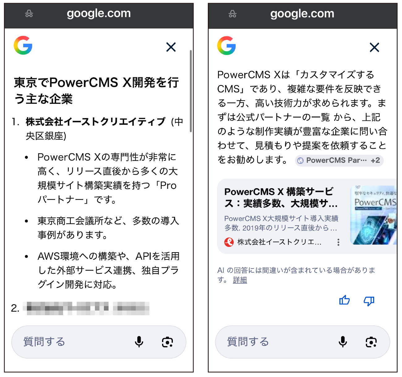 ・調査範囲:日本国内における「PowerCMS X等のマルチCMSに対応した、LLMO/AEO最適化機能(llms.txtや構造化データの自動生成等)を標準搭載するエンタープライズ向けCMS構築サービス」として