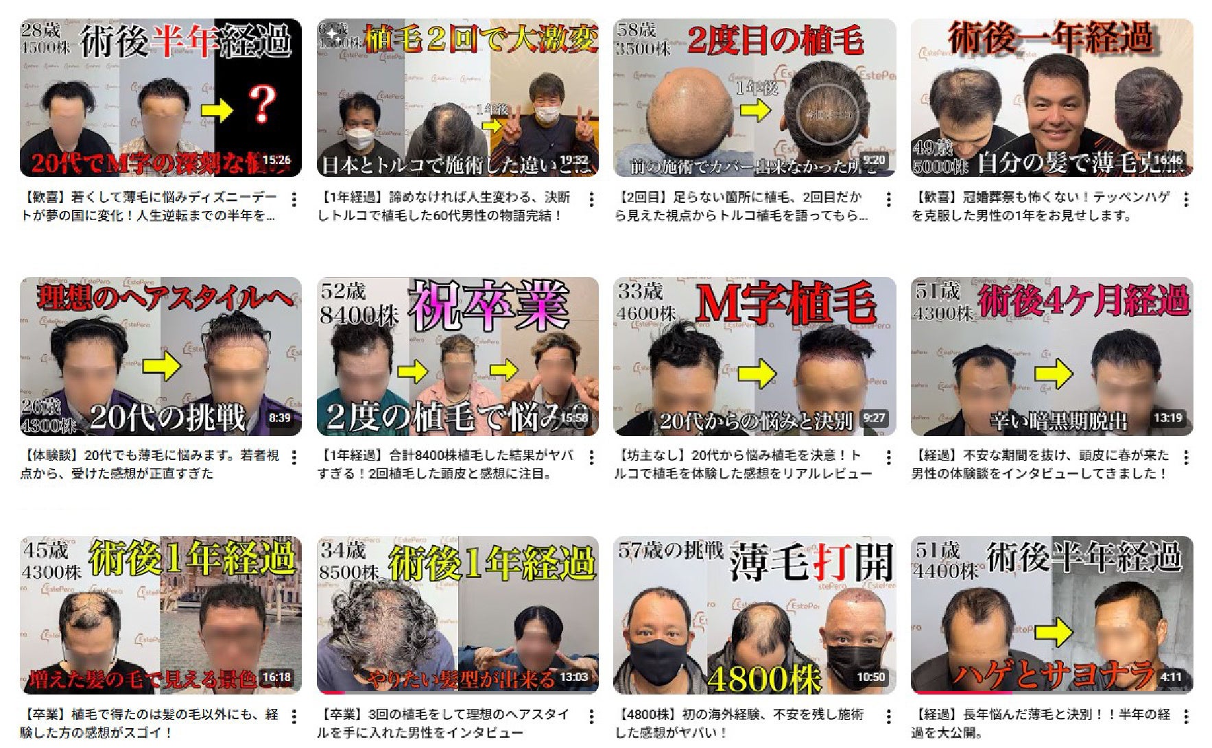 特にインタビュー形式で進行する動画では、周りの環境の変化や、家族の反応、経過が進むにつれて笑顔が増えていく様子は、トルコ植毛によって見た目の変化だけでなく、自信や前向きな気持ちまで取り戻していく過程をリアルに物語っています。
